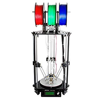 Der Rostock 301 vom Hersteller Geeetech ist einer der wenigen Multifilamentdrucker, die 3 Filamente über ein Diamondhotend verarbeiten und somit theoretisch RGB Multifarbdrucke möglich macht. Damit nicht genug, er verfügt über ein festes, unbewegliches und zugleich beheizbares Druckbett, welches einen Durchmesser von 220mm hat. Da dass Bett unbeweglich ist, bietet es maximalen Halt für das Druckvorhaben.