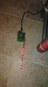 Ich habe mein 12V Breakout für Arduino’s genommen, einen Arduinonano(clon) dazu, und daran flux 6 LEDs gefriemelt. Dann habe ich schmerzhaft lernen müssen, dass nicht jede Neopixel lib (Lib=Library->eine Softwarebibliothek…immer noch nichts?… vergiss es!), auch alles kann, was man so mit einem Neopixel macht. Gleich vier unterschiedliche Bibliotheken habe ich auf die schnelle gefunden. Ich nehme an, dass es sich um die frei verfügbaren Platzhirsche handelt.