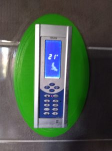 Das zentrale Bedienelement der Dampfdusche. Hier lassen sich alle angeschlossenen Geräte ansteuern und ablesen. Dampfzeit und Temperatur, Belüftung, Beleuchtung, Ozongenerator, Radio und Bluetootheinstellungen. Gefasst wurde diese Armatur in einen von mir dazu passend entwickelten Rahmen, welcher die unschöne Öffnung im Fliesenschild kaschiert und alles gut abdichet. Obwohl das Gehäuse des Bedienelementes Wasserdischt ist, hindern wir so das Wasser am eindringen zwischen/hinter der Armatur.