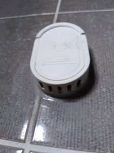 Eine moderne Dampfdusche braucht auch eine eigene Lampe. Ohne Licht im Innenraum war es bislang in der Dusche dank des vorhandenen Oberlichtes eigentlich hell genug, sagt meine Frau, aber das ganze nahm seinen Anlauf mit einem nicht funktionierenden (marine)Lautsprecher. Da dieser schon beim Bau des Bades im Fliesenschild vorgesehen war und ist musste ich ich ihn erst vorsichtig ausschneiden um ihn genauer unter die Lupe nehmen zu können. Das Problem war schnell gelöst, denn es hatte sich nur eine unsaubere Lötstelle am Lautsprecherkabel gelöst (immerhin war der Lautsprecher verlötet).